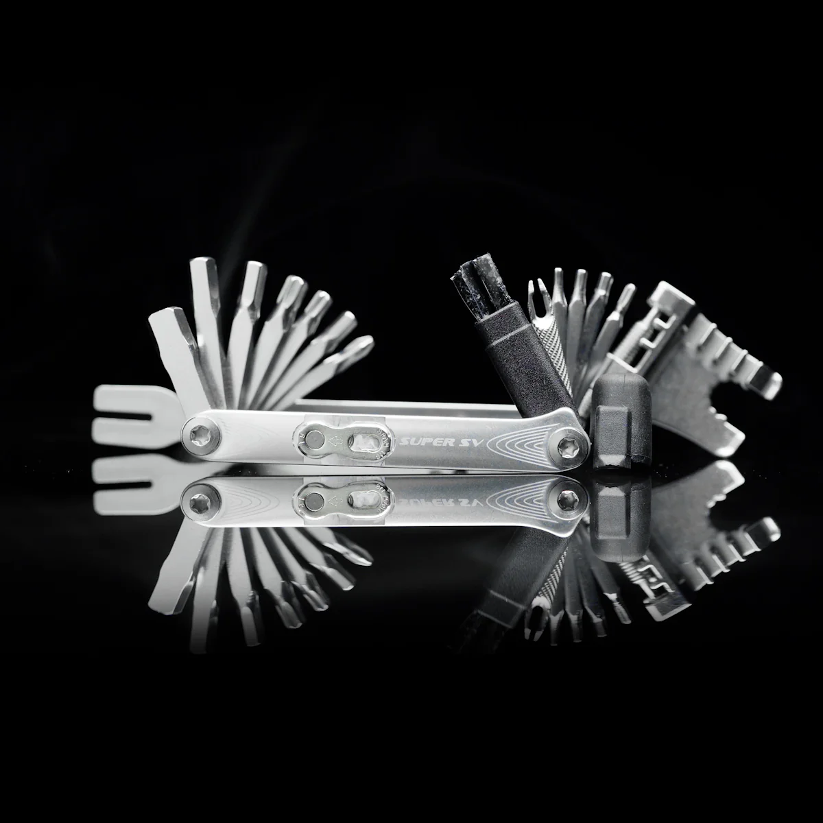 The Super SV stainless bike multi-tool is the ultimate ride repair tool, developed specifically for today's modern bicycles. Its ergonomic machined-aluminum side plates offer extra leverage and an integrated magnetic holder for a spare quick link. Each tool bit is meticulously machined from high-grade stainless steel and crafted to be as compact and lightweight as possible. Available in two configurations, with one offering an integrated tubeless tire repair kit, the Super SV series is ideal for any mountain biker or road cyclist looking for the best, corrosion-free multi-tool.